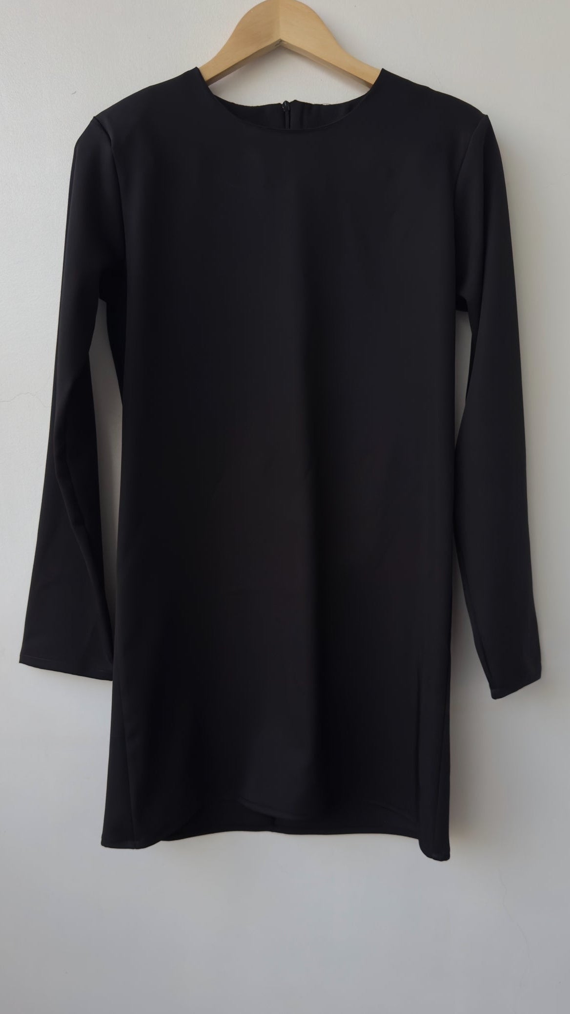 Robe structurée aux manches longues, avec épaulettes et fermeture éclaire dissimulée au dos.